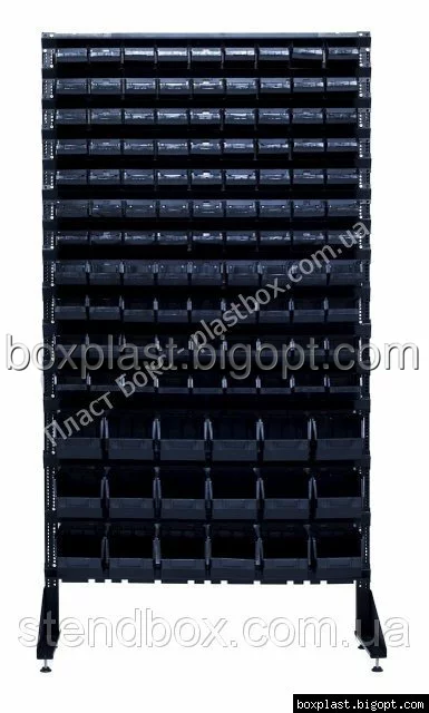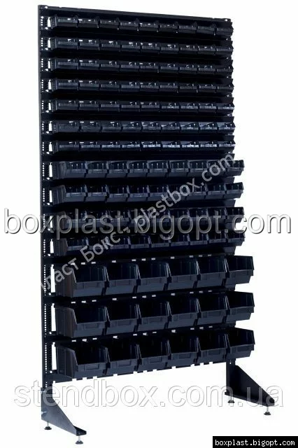 Напольный пристенный торговый стенд с пластиковыми ящиками