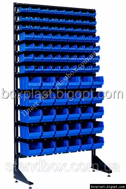 Очень необходимый стеллаж для любой мелкой продукции, которая храниться в неудобных картонных коробках. Комплектация стеллажа - стойки для радиодетелей с ящиками: Артикул арт. 701 арт. 702 арт. 703 Материал пластик Цвет 30 шт - синий 36 шт - синий 27 шт. - синий Размер (высота*ширина*глубина) 125*145*230 мм 75*100*155 мм 50*100*90 мм Вес 205 гр 85 гр 33 гр Нагрузка 15 кг 7 кг 3 кг Объем ящика 1,5 л 0,5 л 0,2 л Боковые стенки с ребрами жесткости Вкладываемый нет Дно сплошное